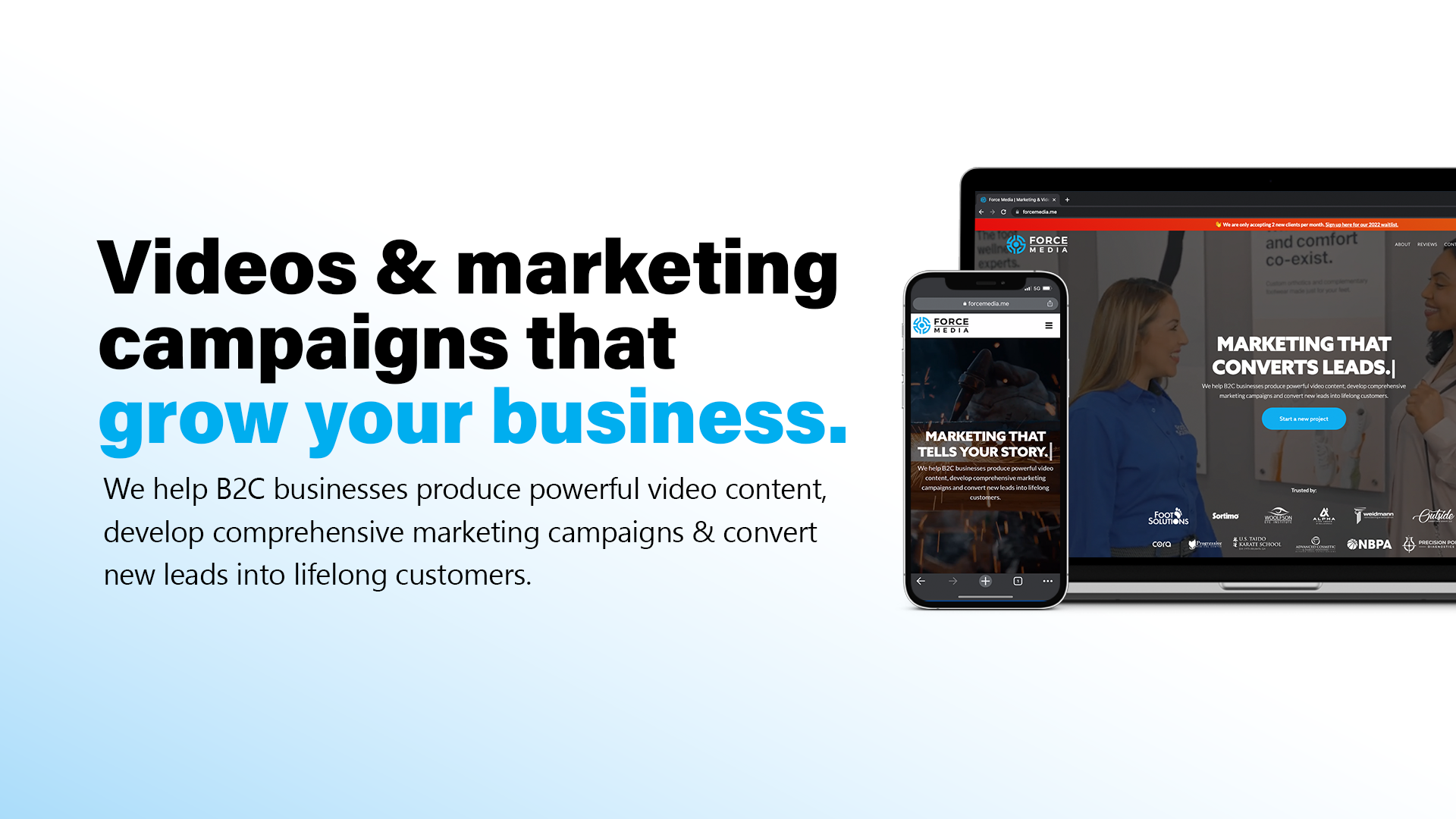 We help B2C businesses produce powerful video content, develop comprehensive marketing campaigns & convert new leads into lifelong customers.