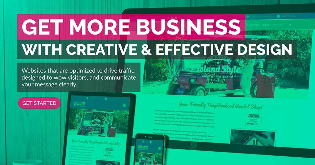 Get creative, targeted, and effective web design. Located in Bradenton, near Anna Maria Island, and Sarasota, FL. Contact us and get more business now.